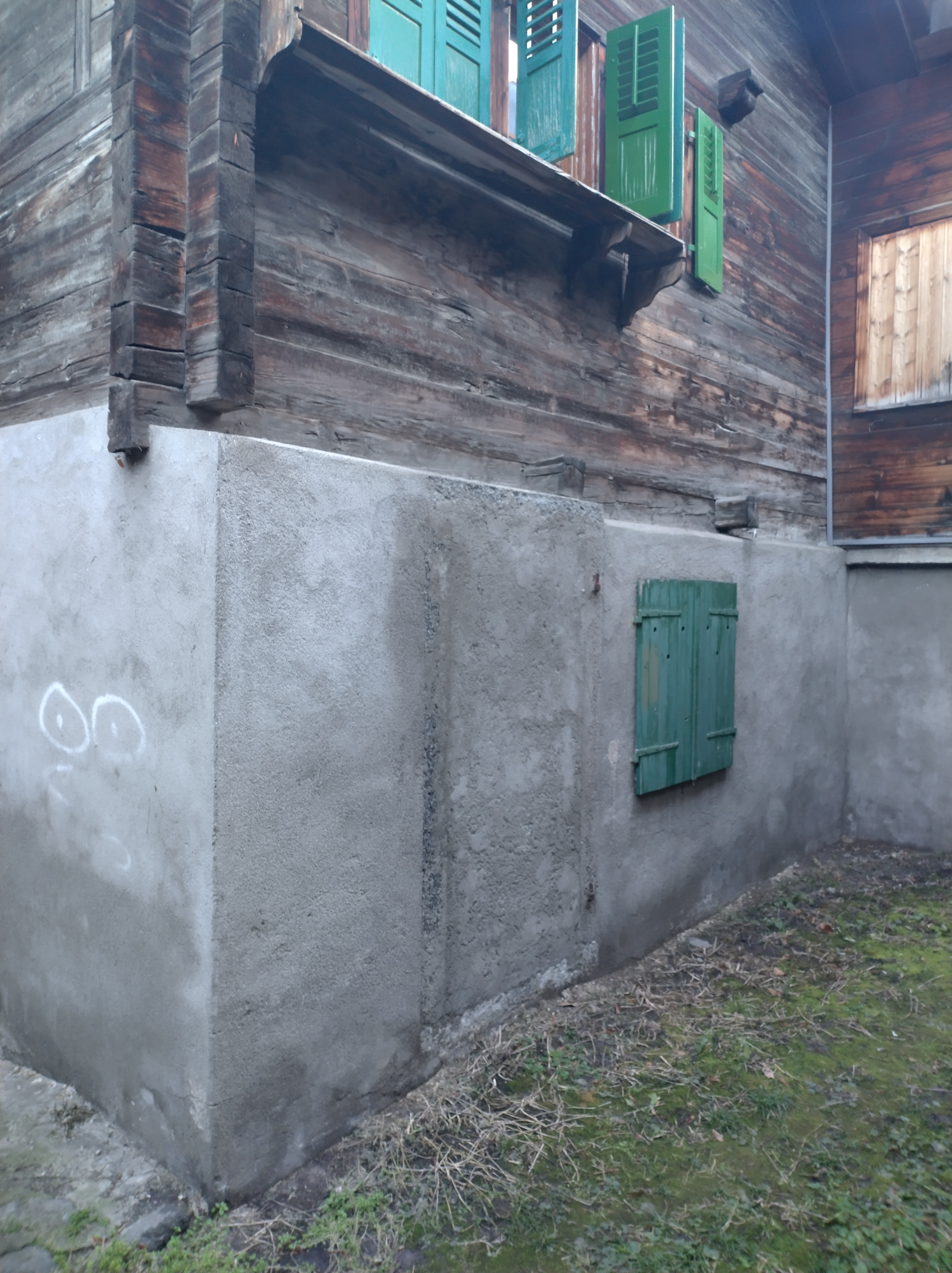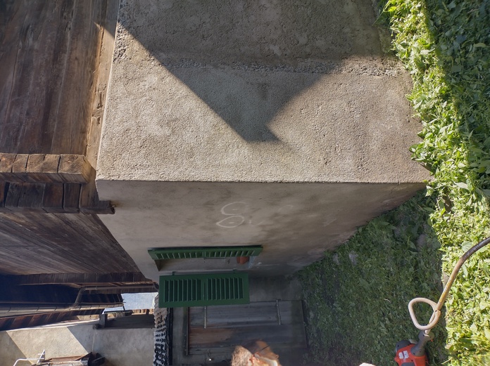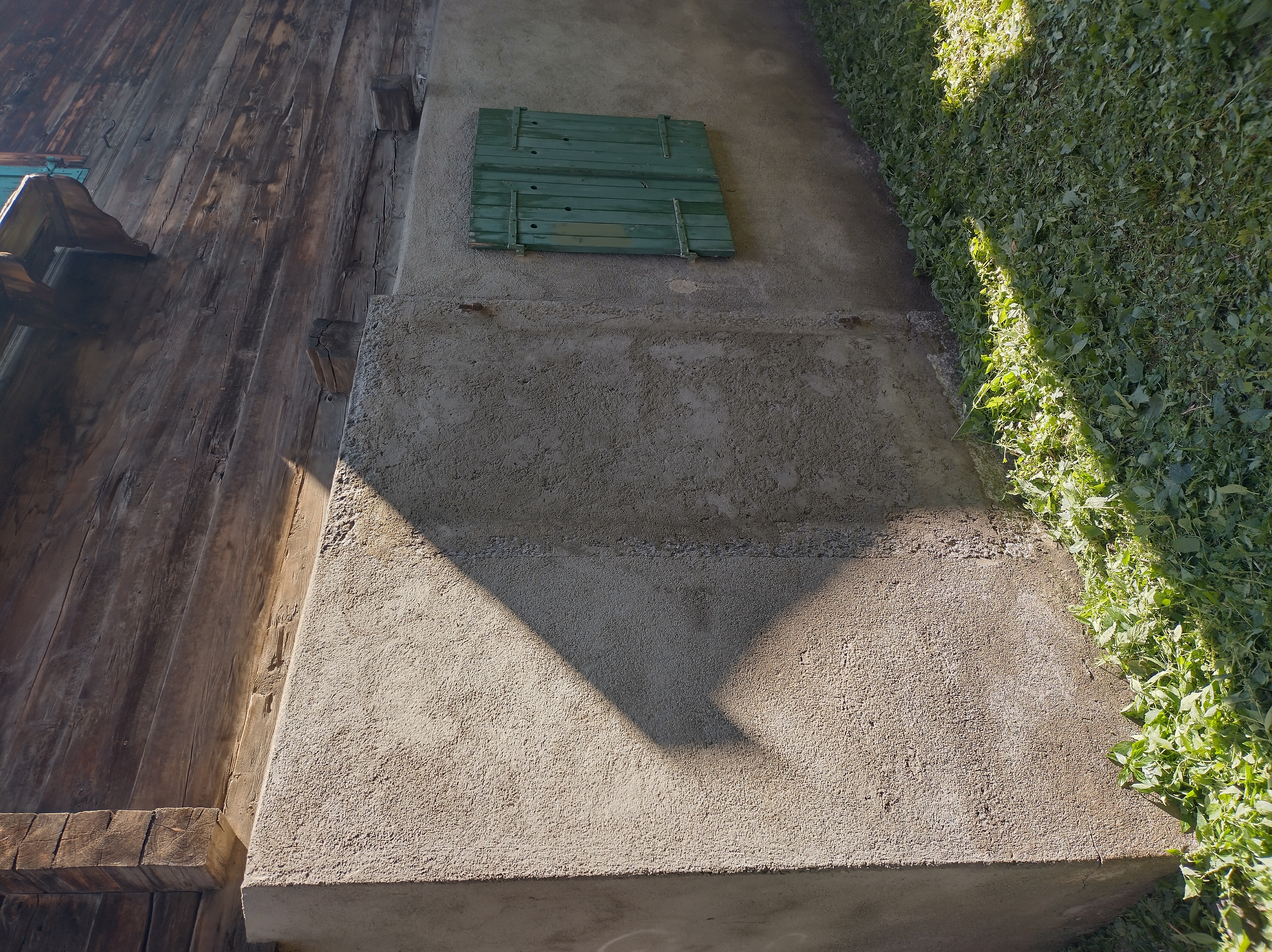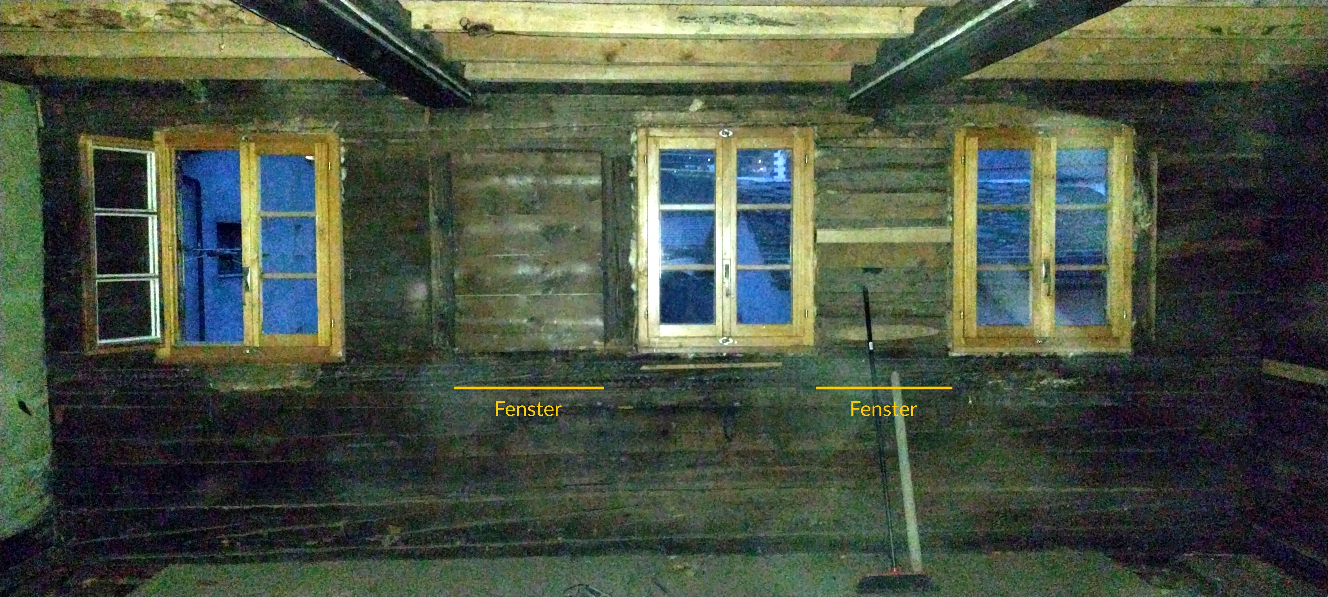 Zugemauertes Fenster: 104 cm breit x 104 cm hoch, 82 cm ab Boden draussen