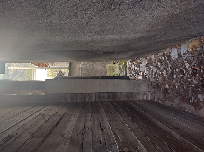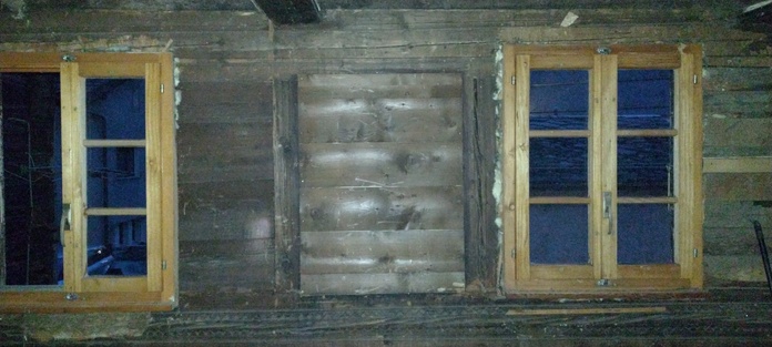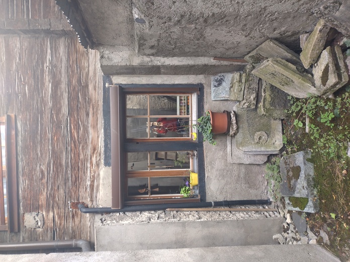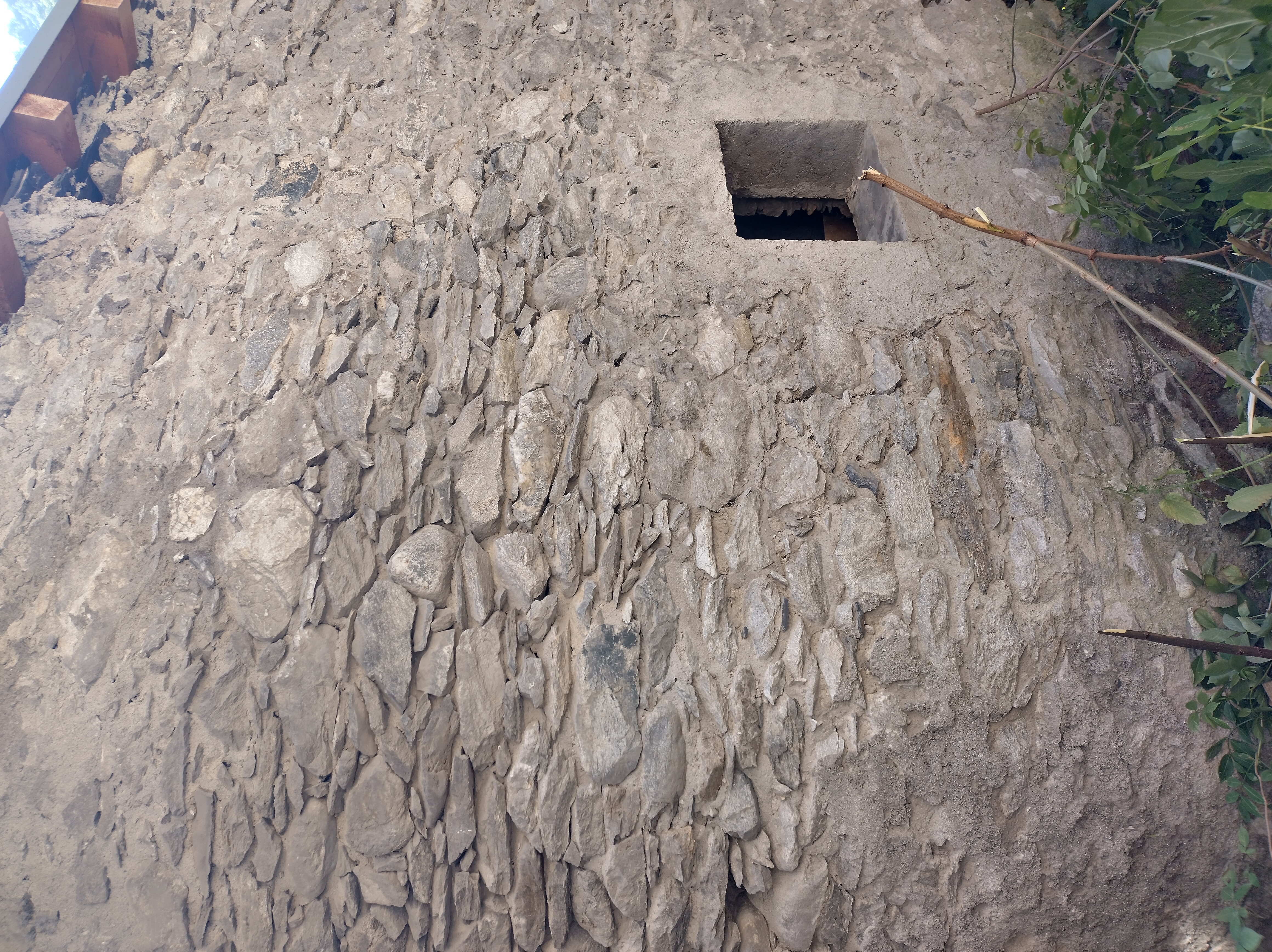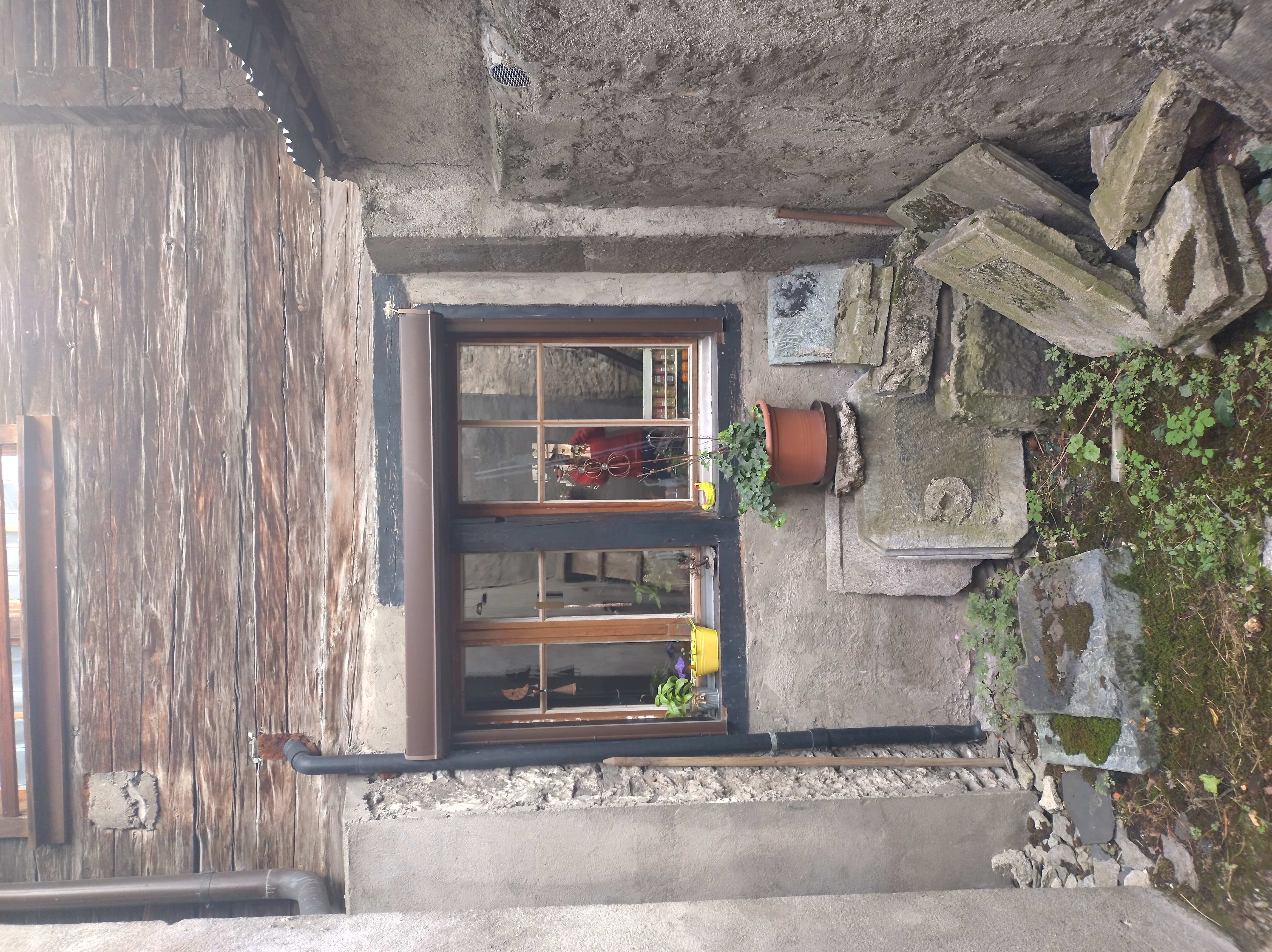 Zugemauertes Fenster: 104 cm breit x 104 cm hoch, 82 cm ab Boden draussen