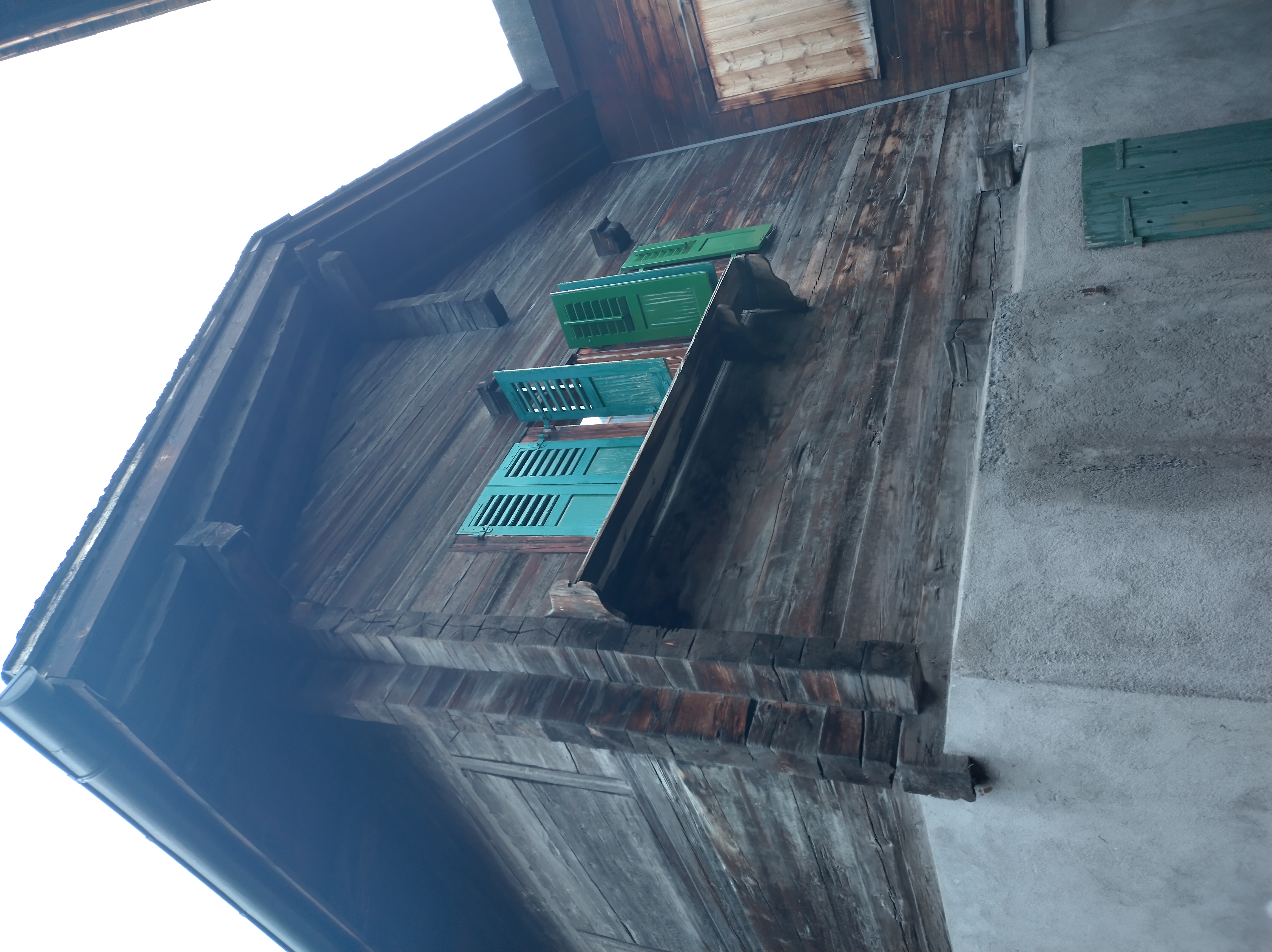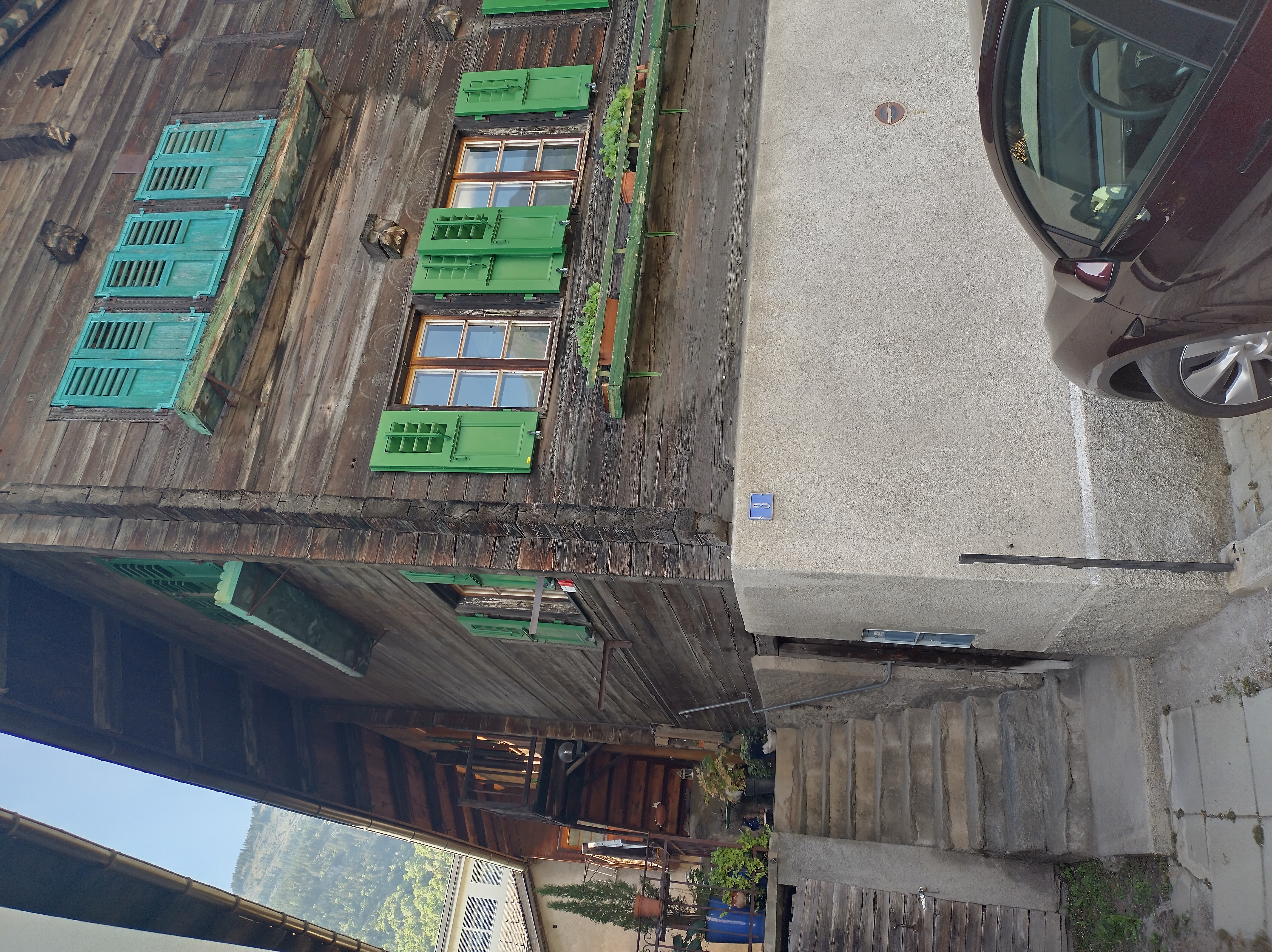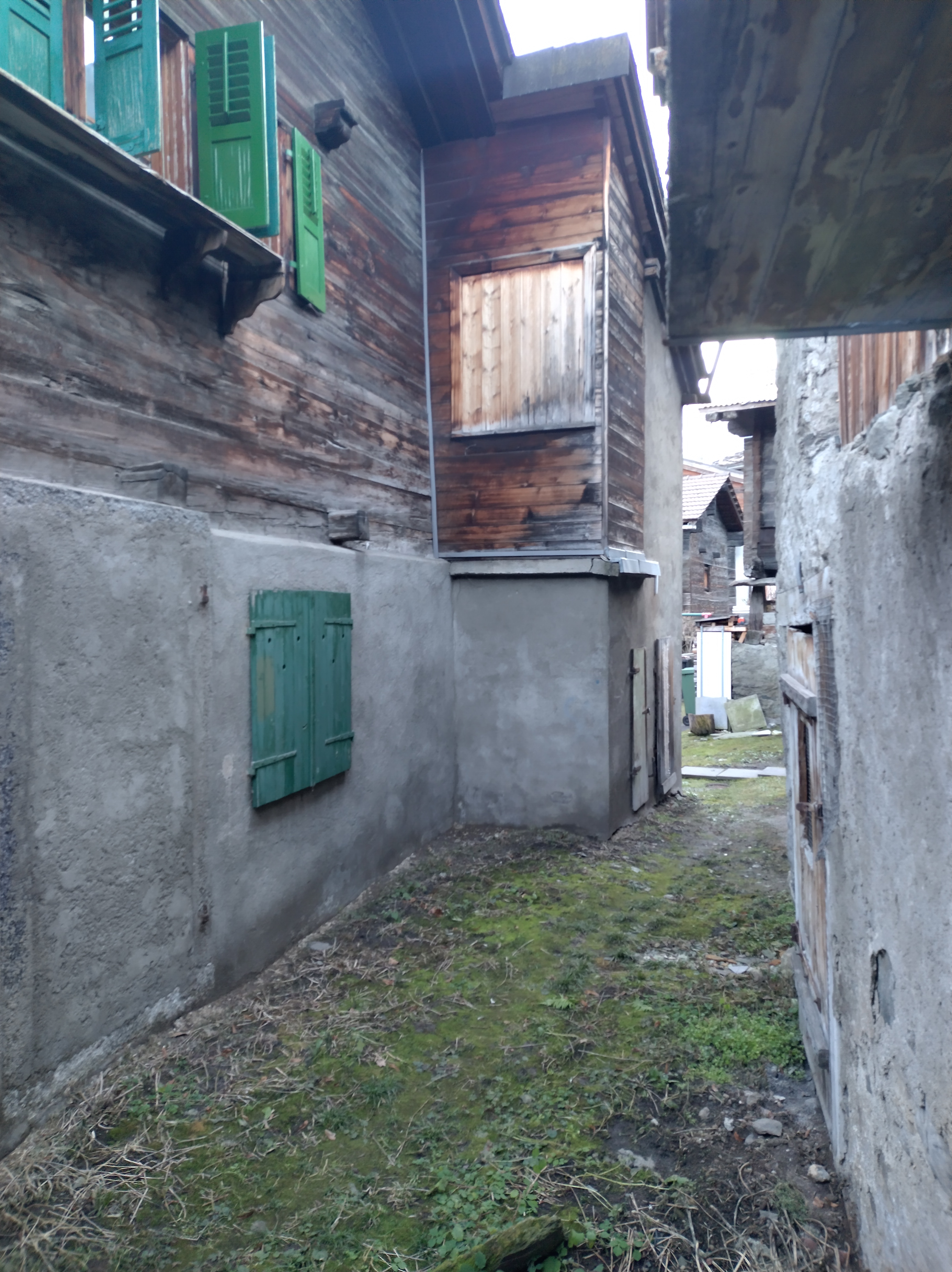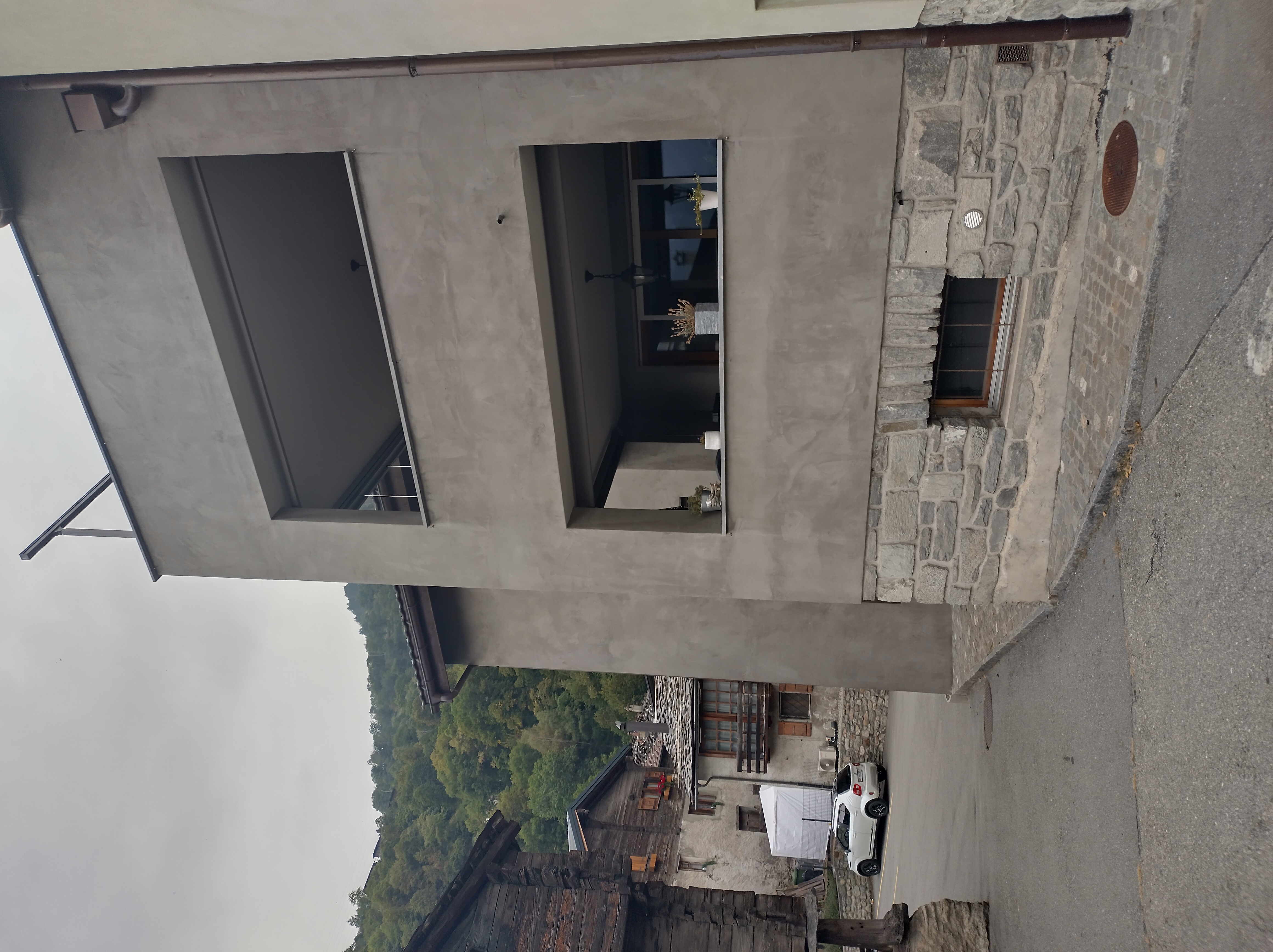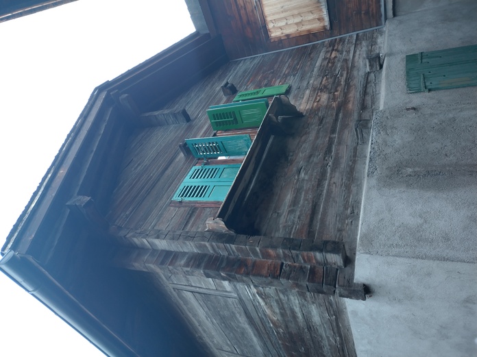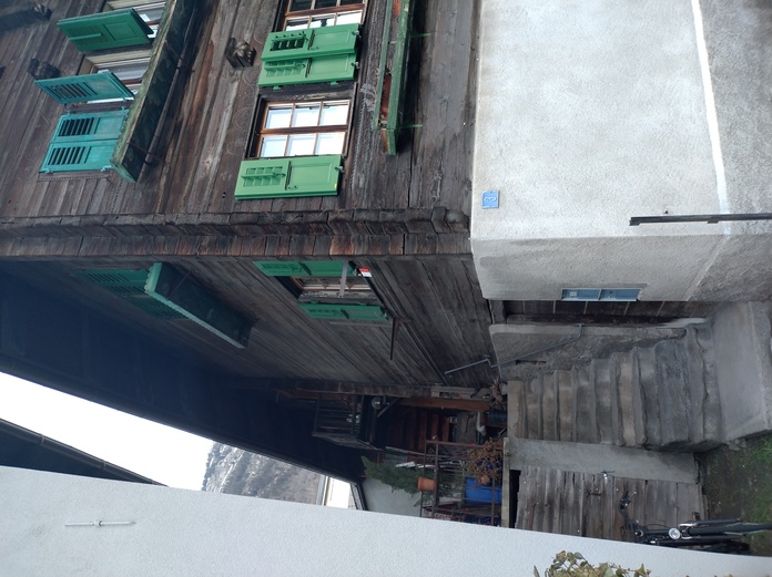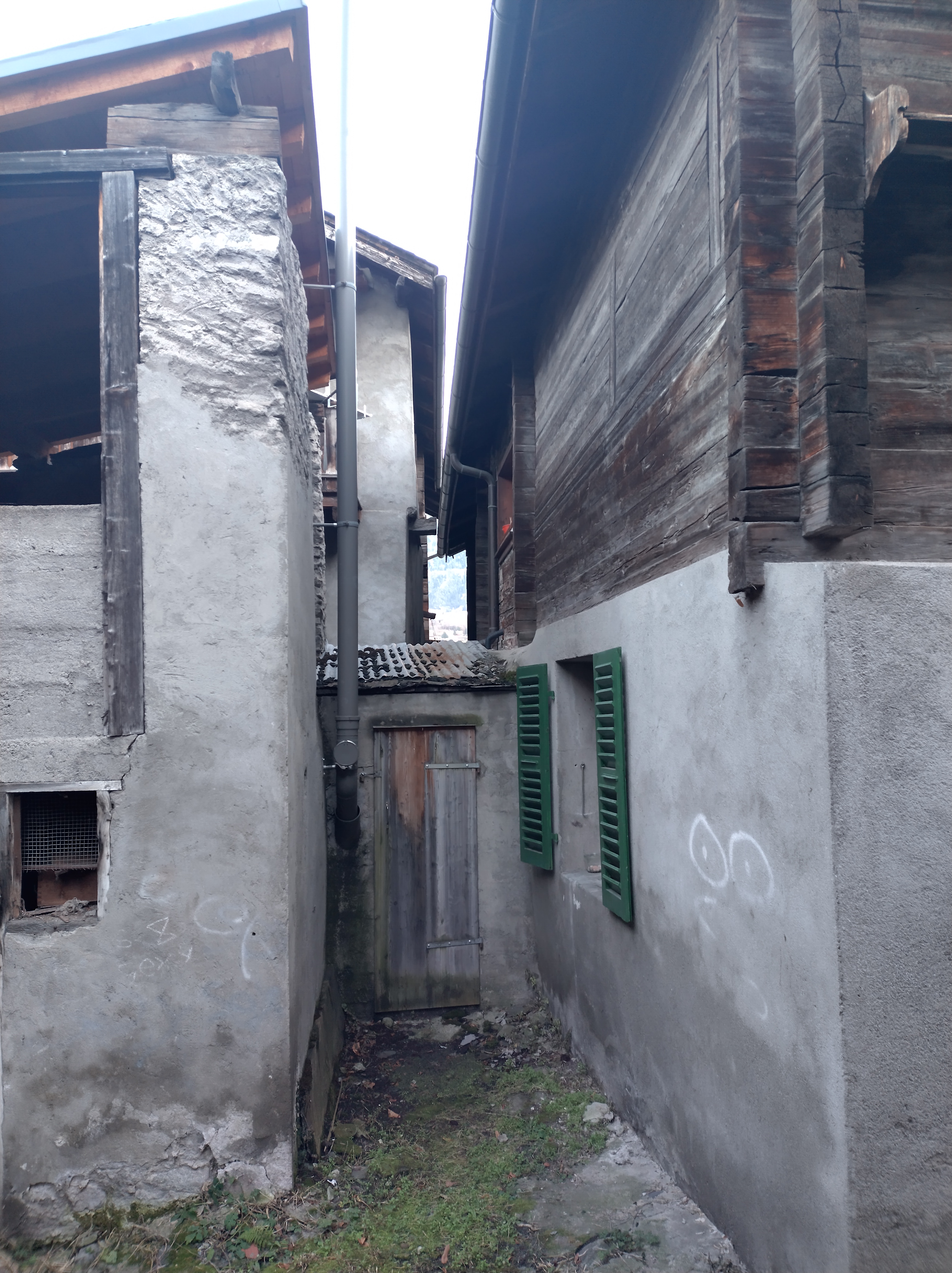 Neuere, renovierte Gebäude sind weiss gestrichen, manchmal ganz leicht gelblich. Einsätze sind grau verputzt oder gestrichen, oder aus dunklem alten Holz.