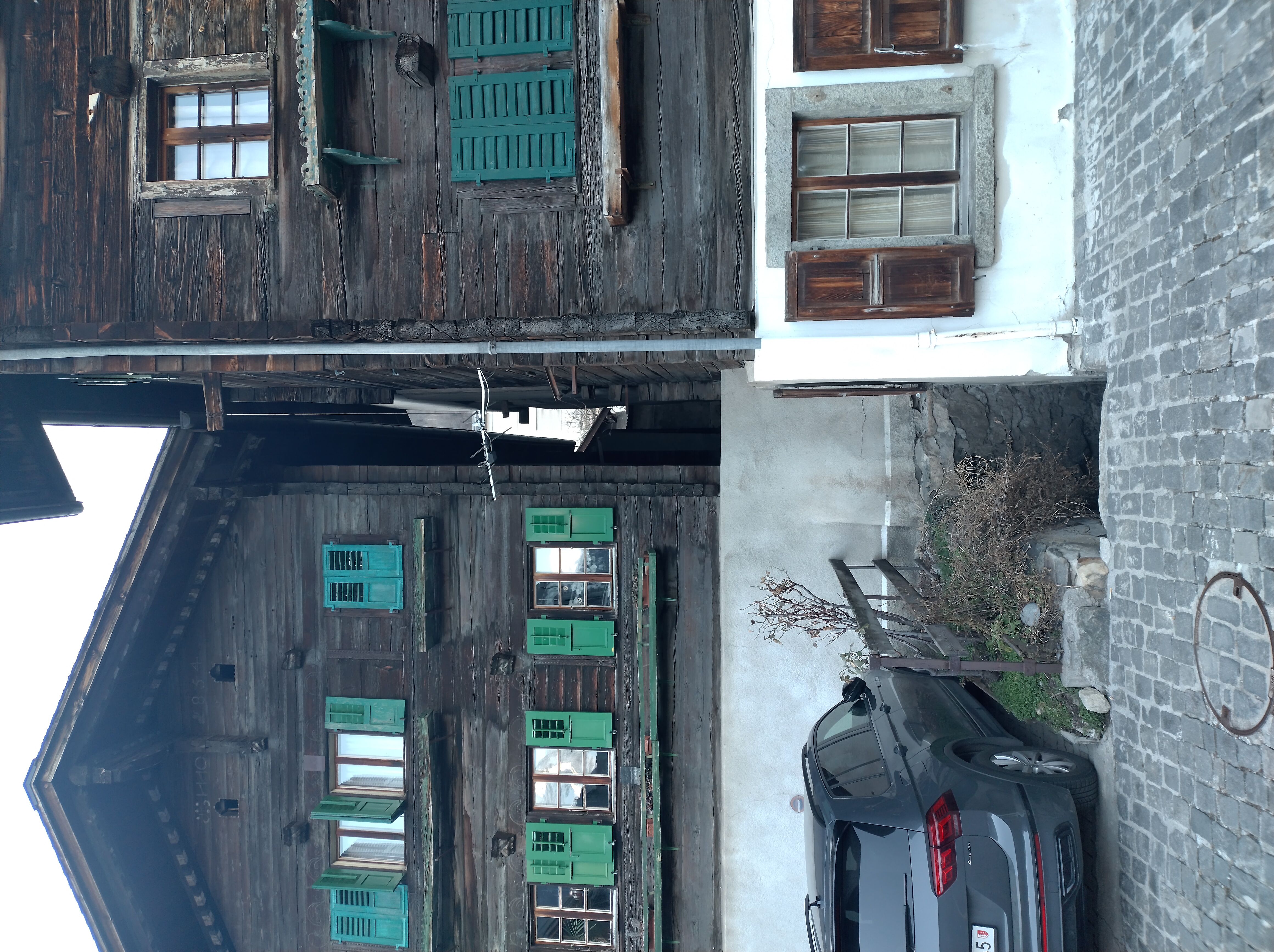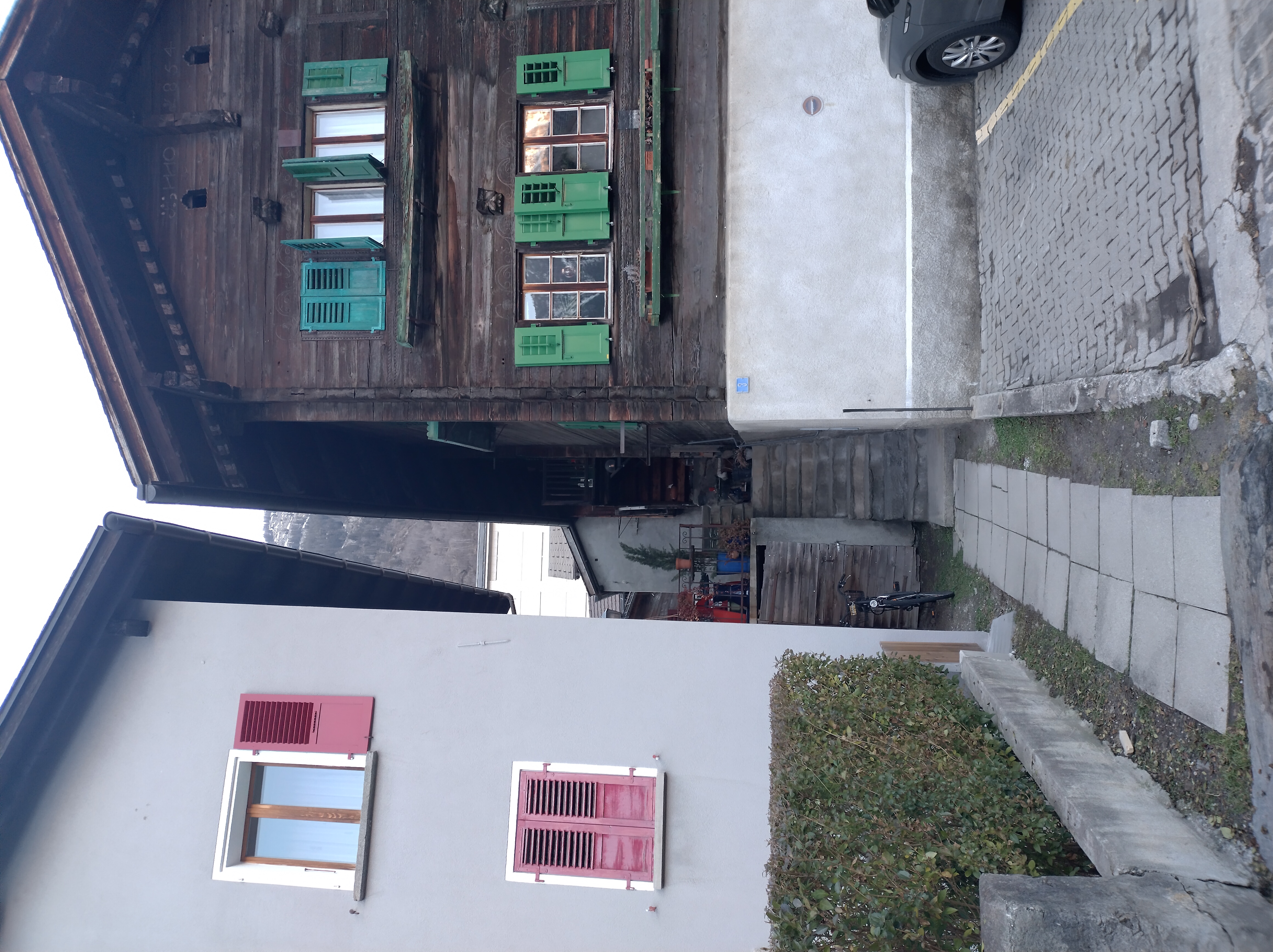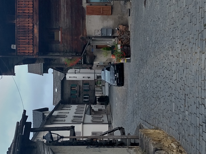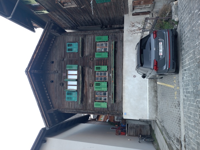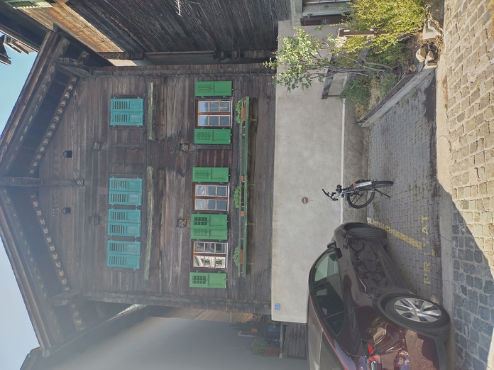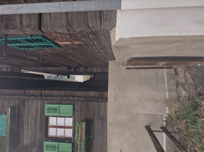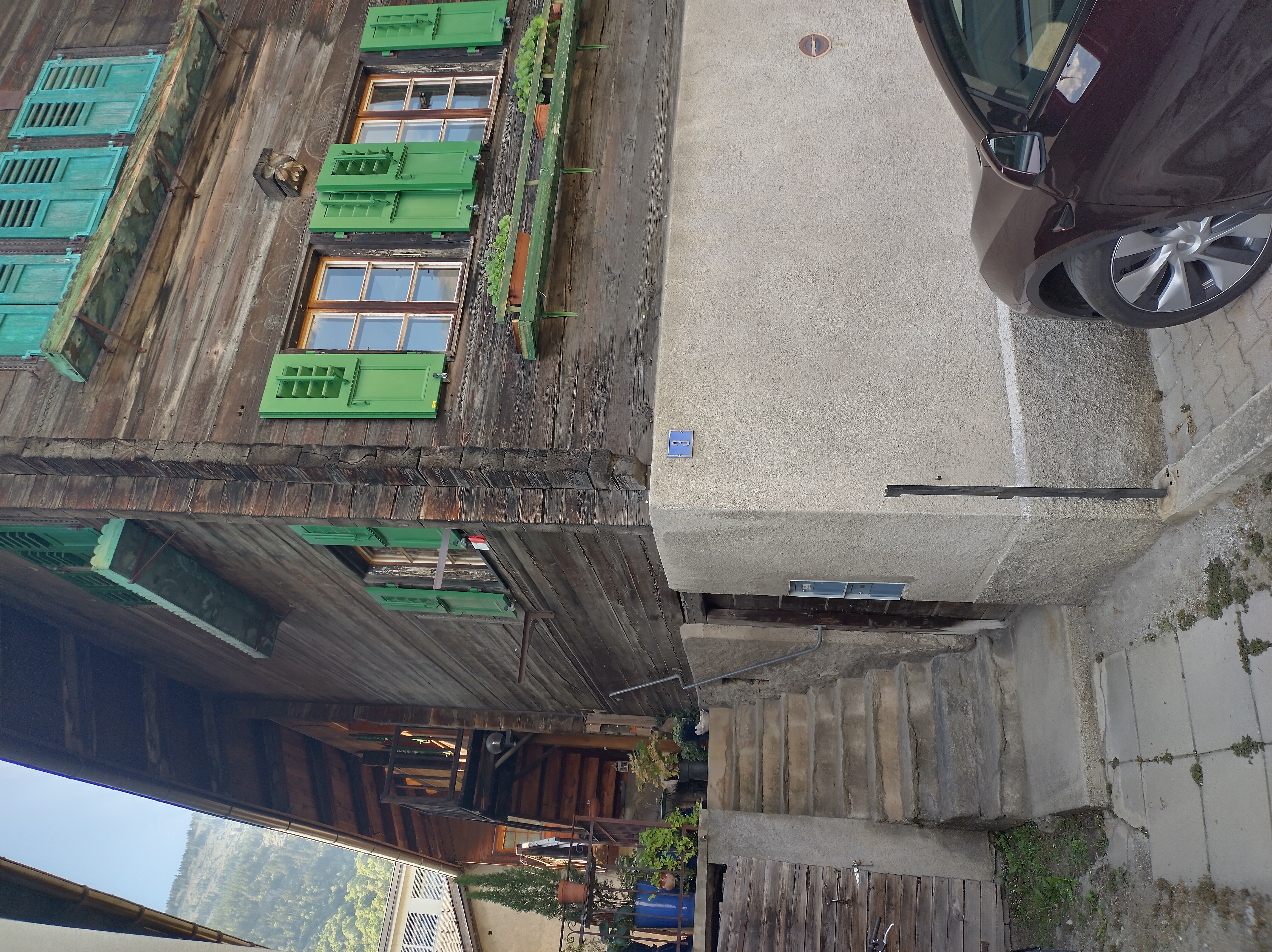 Neuere, renovierte Gebäude sind weiss gestrichen, manchmal ganz leicht gelblich. Einsätze sind grau verputzt oder gestrichen, oder aus dunklem alten Holz.