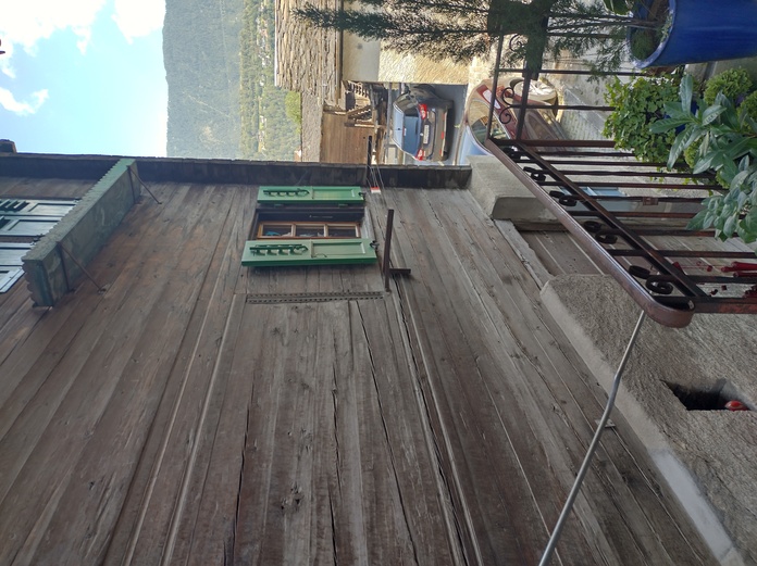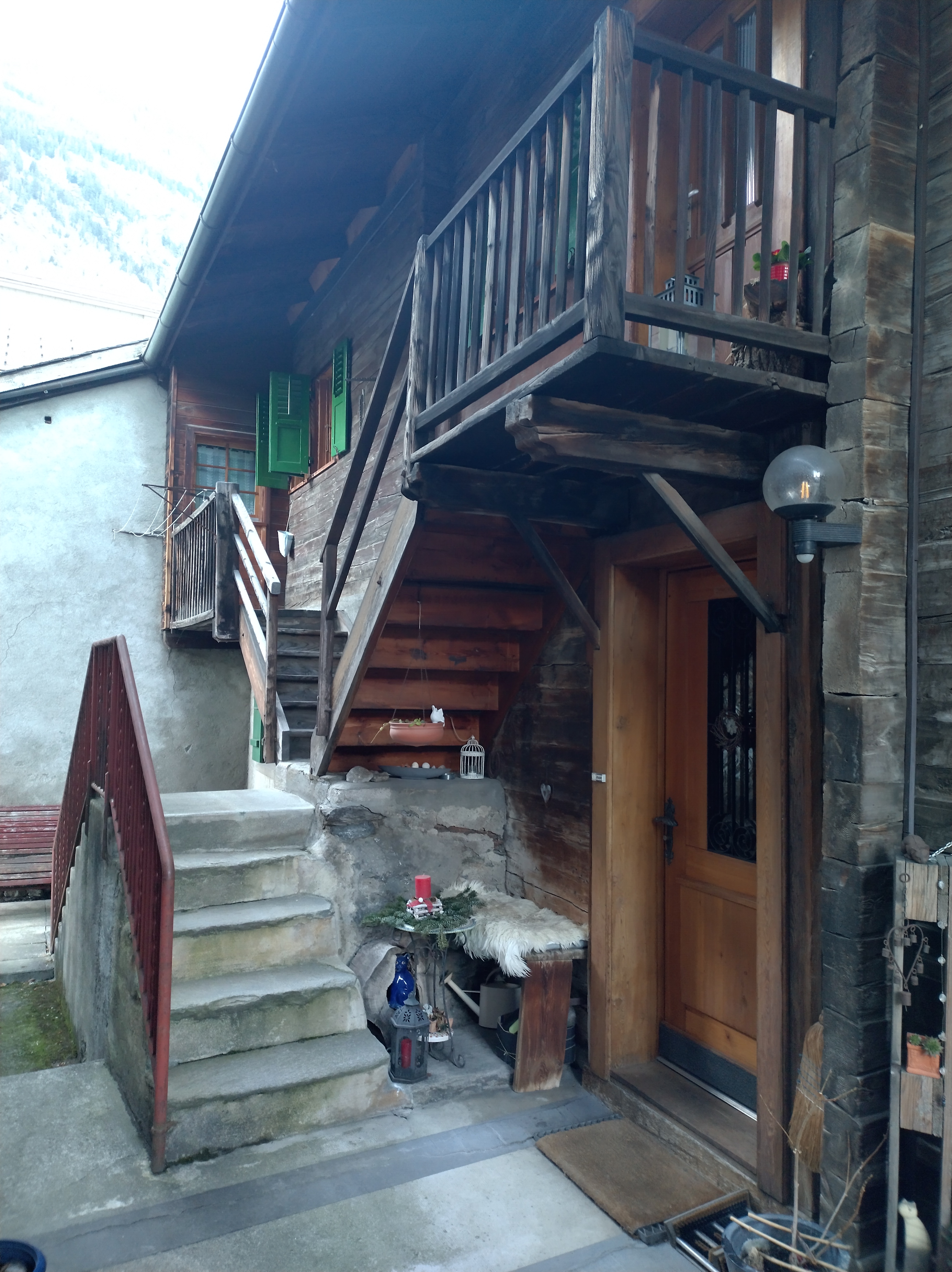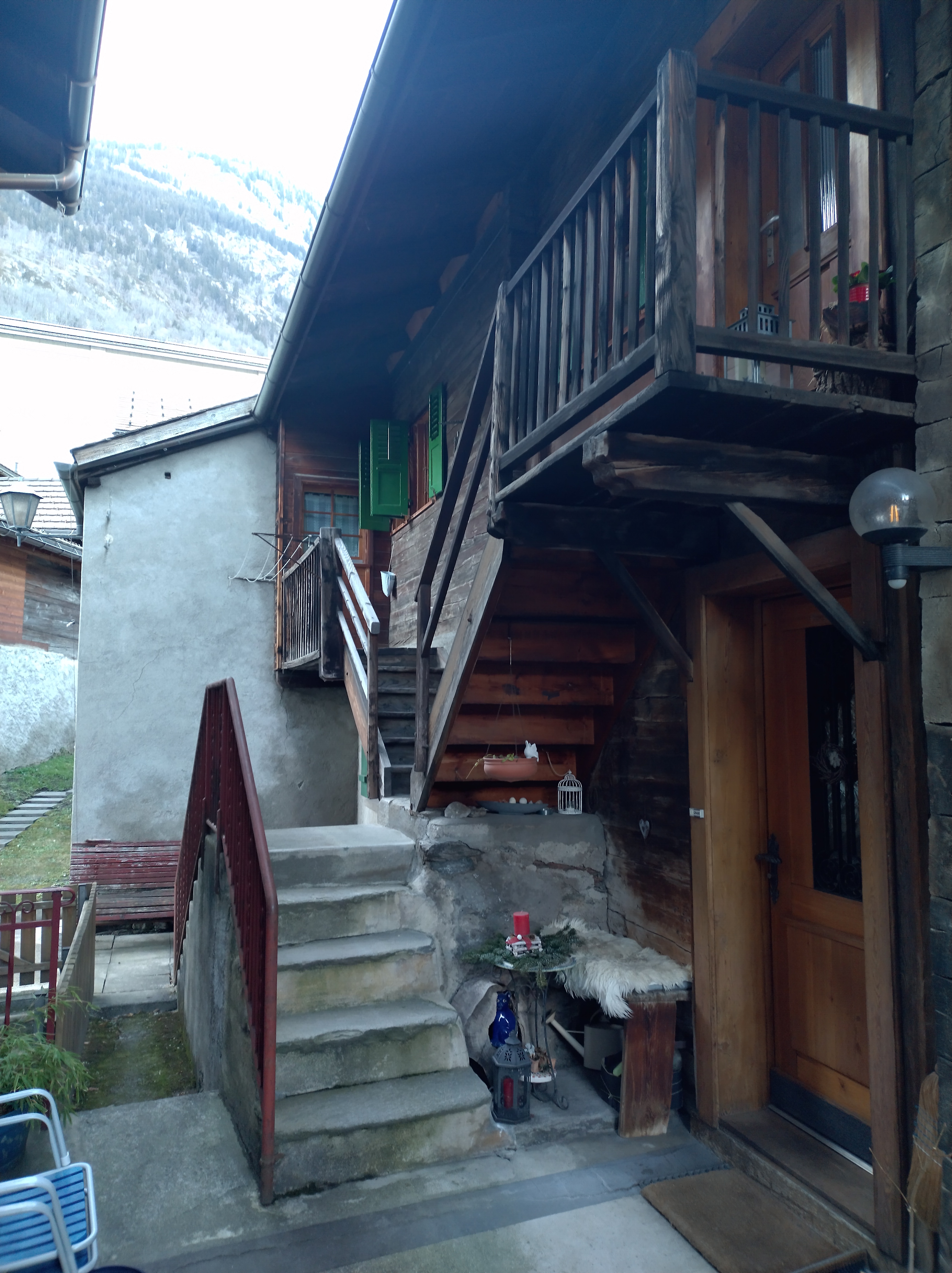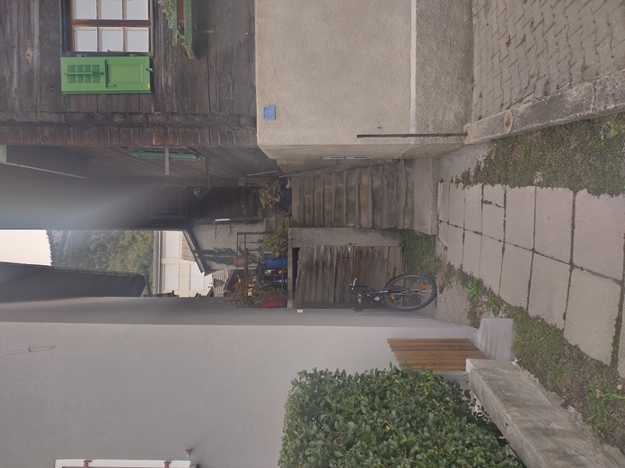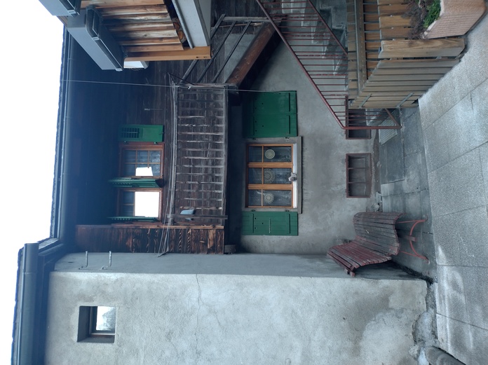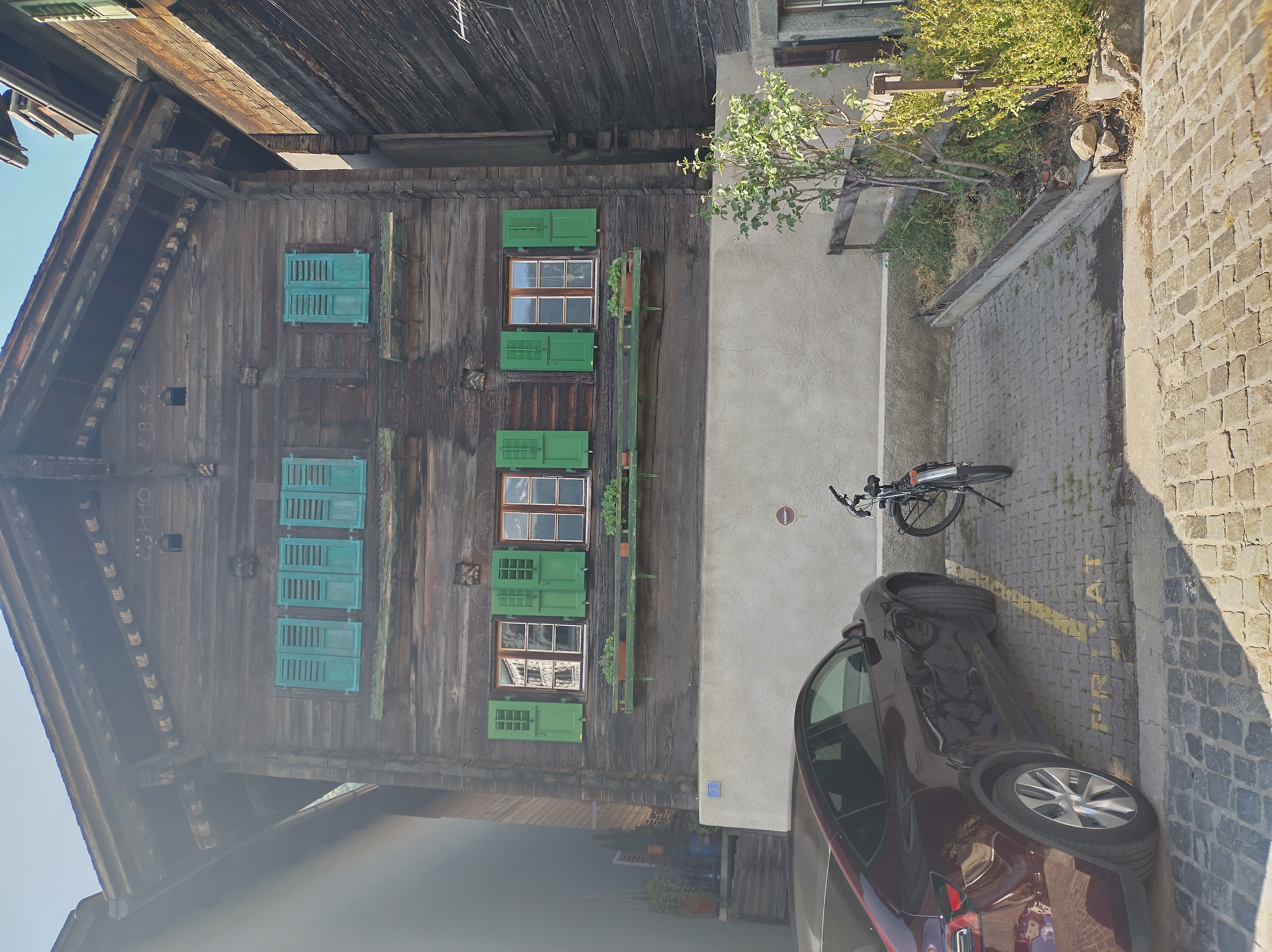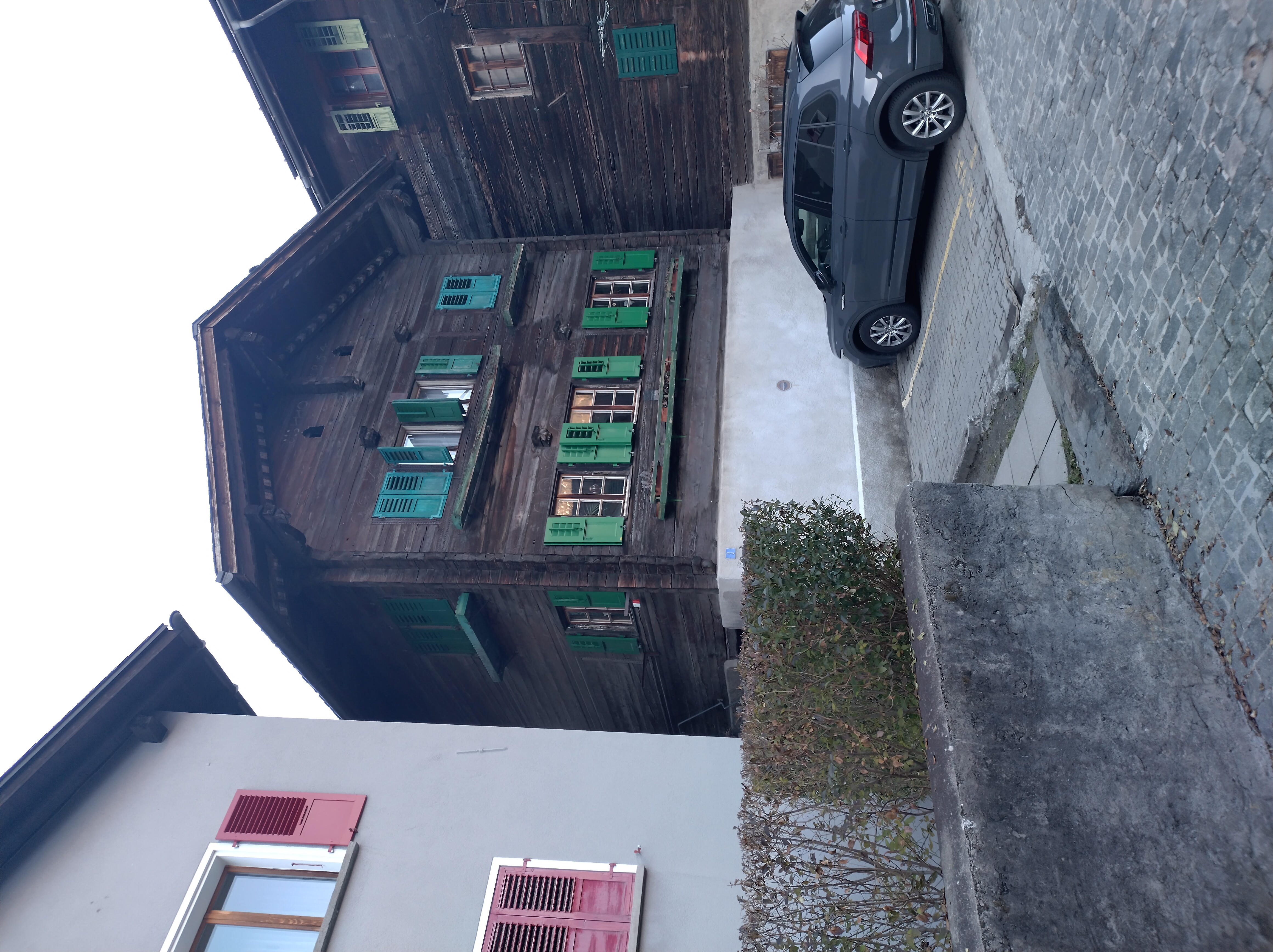 Neuere, renovierte Gebäude sind weiss gestrichen, manchmal ganz leicht gelblich. Einsätze sind grau verputzt oder gestrichen, oder aus dunklem alten Holz.