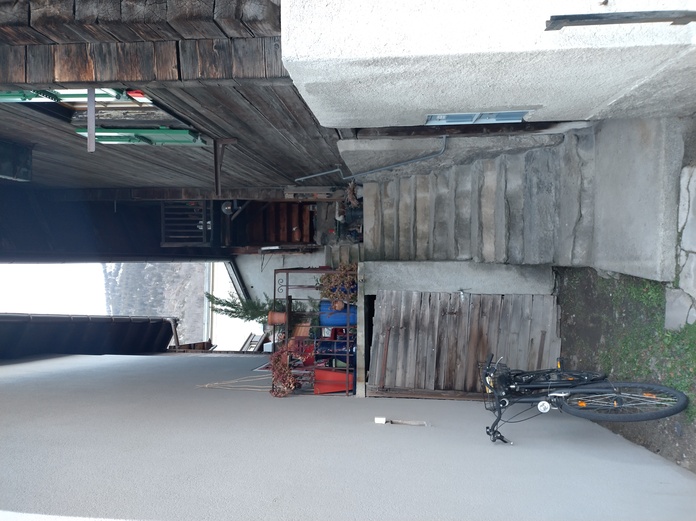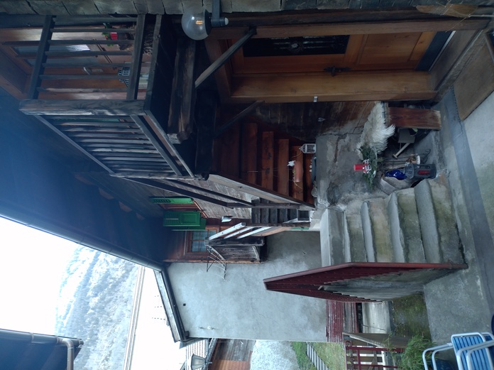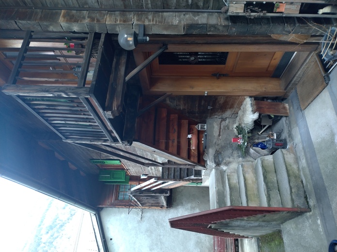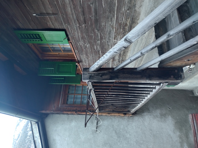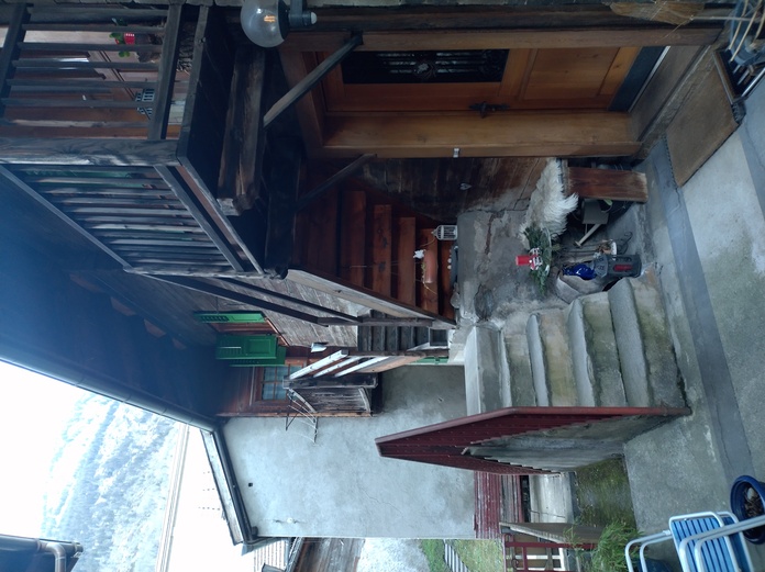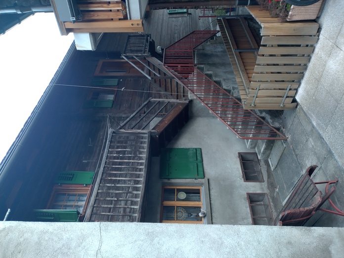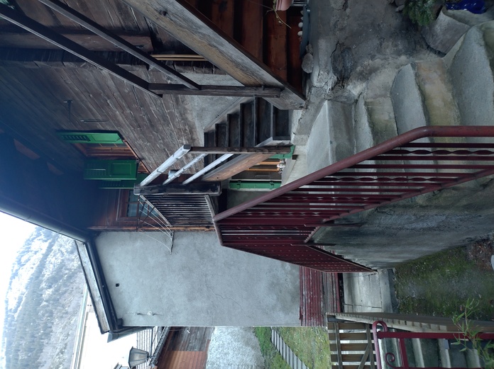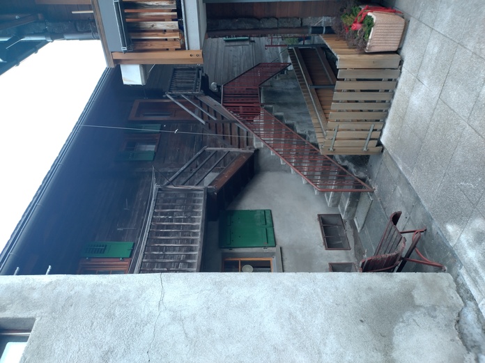 Die aktuellen Treppen führen zum Eingang der oberen Wohnung (rechts) und zu einem kleinen Balkon (links).