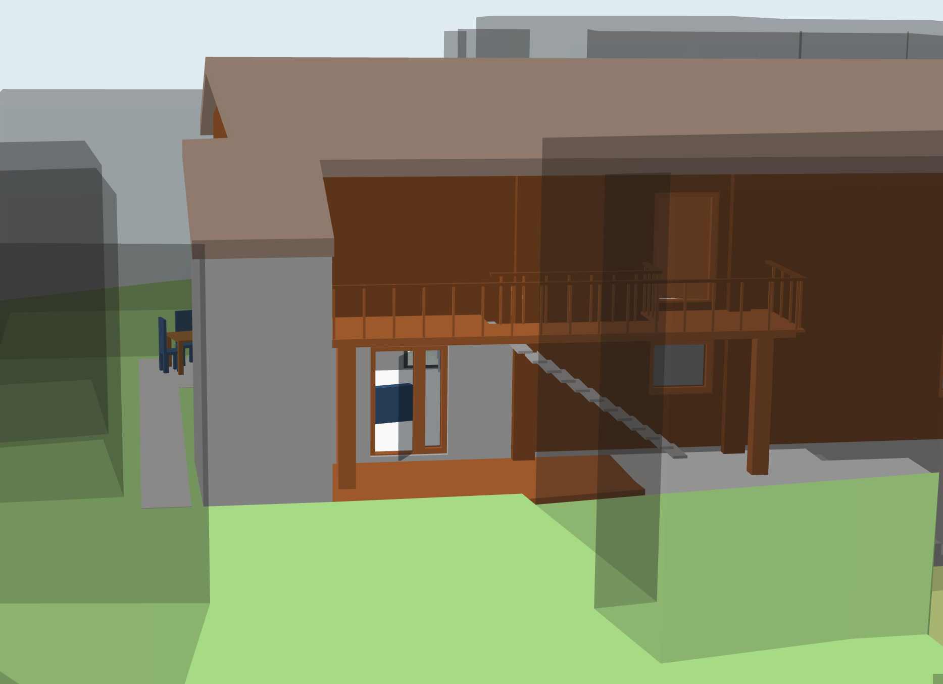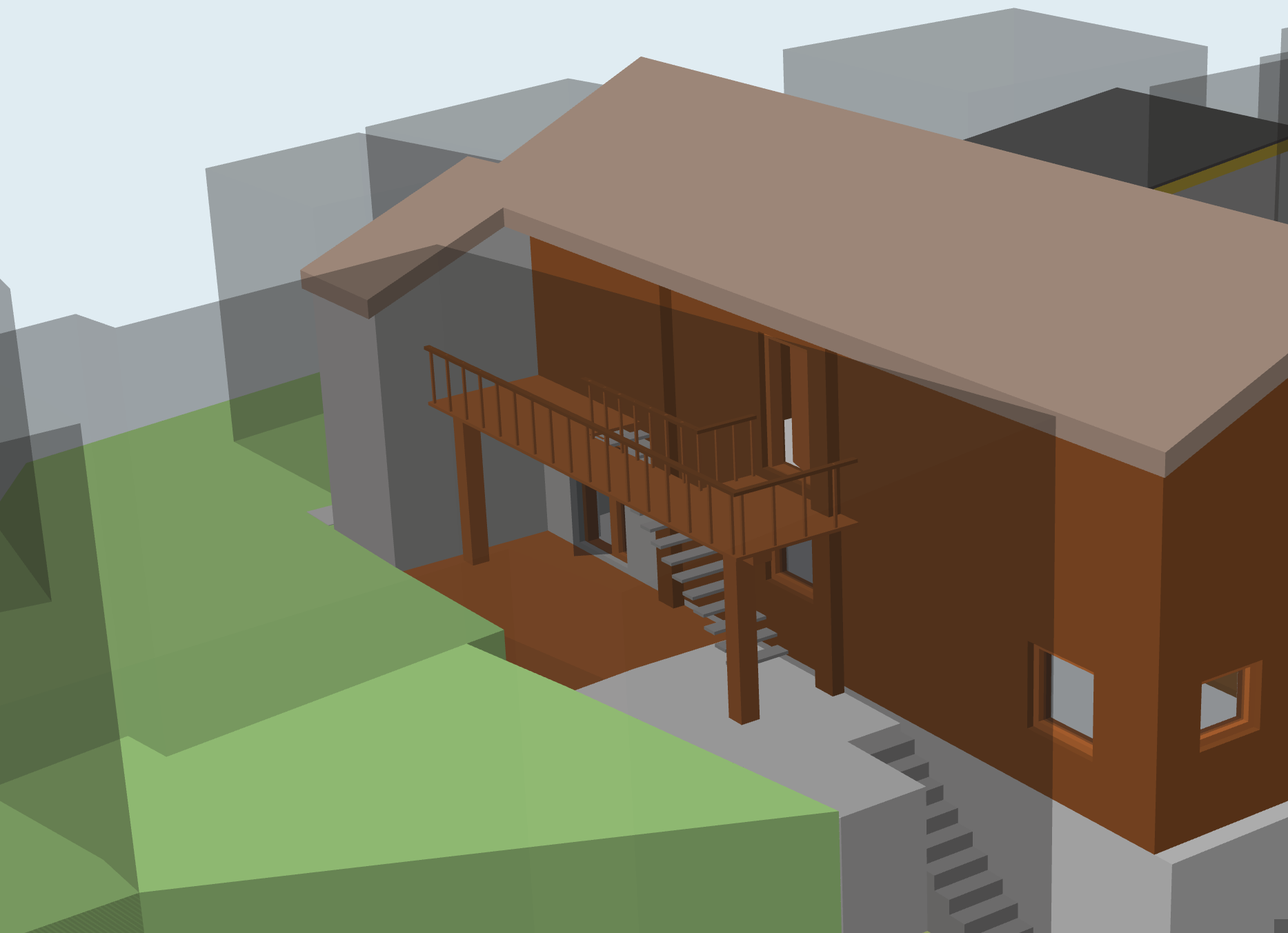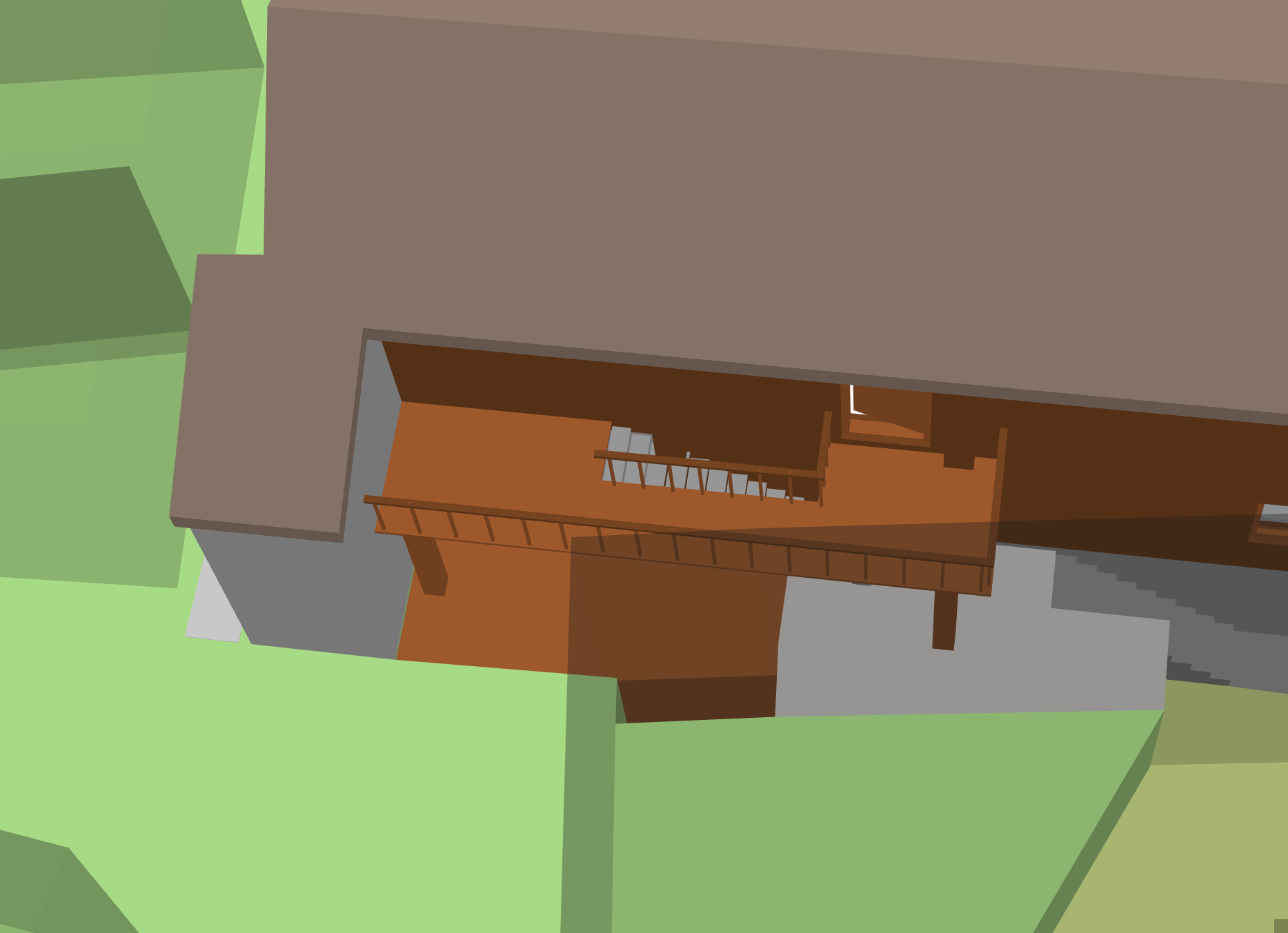 Neu soll eine einzige Treppe zu einem Balkon hoch führen, die gleichzeitig den Eingang verbinden.